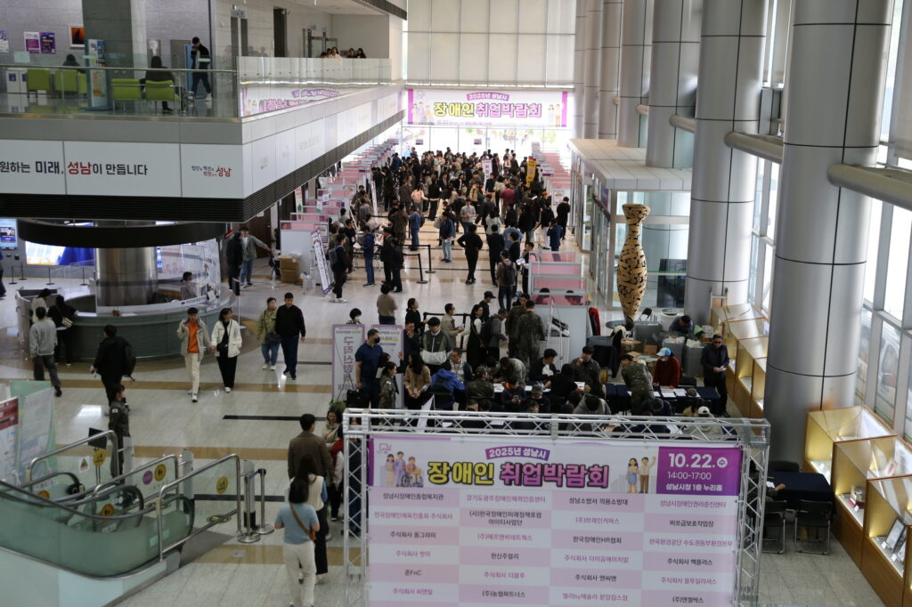 성남시장애인종합복지관은 지난 22일 성남시청 1층 누리홀에서 ‘2025년 성남장애인취업박람회’를 개최했다고 밝혔다. 이번 행사는 구직 장애인과 특수학교 학생, 보호자 등 800여 명이 참여해 다양한 직종의 채용 기회를 제공했다.