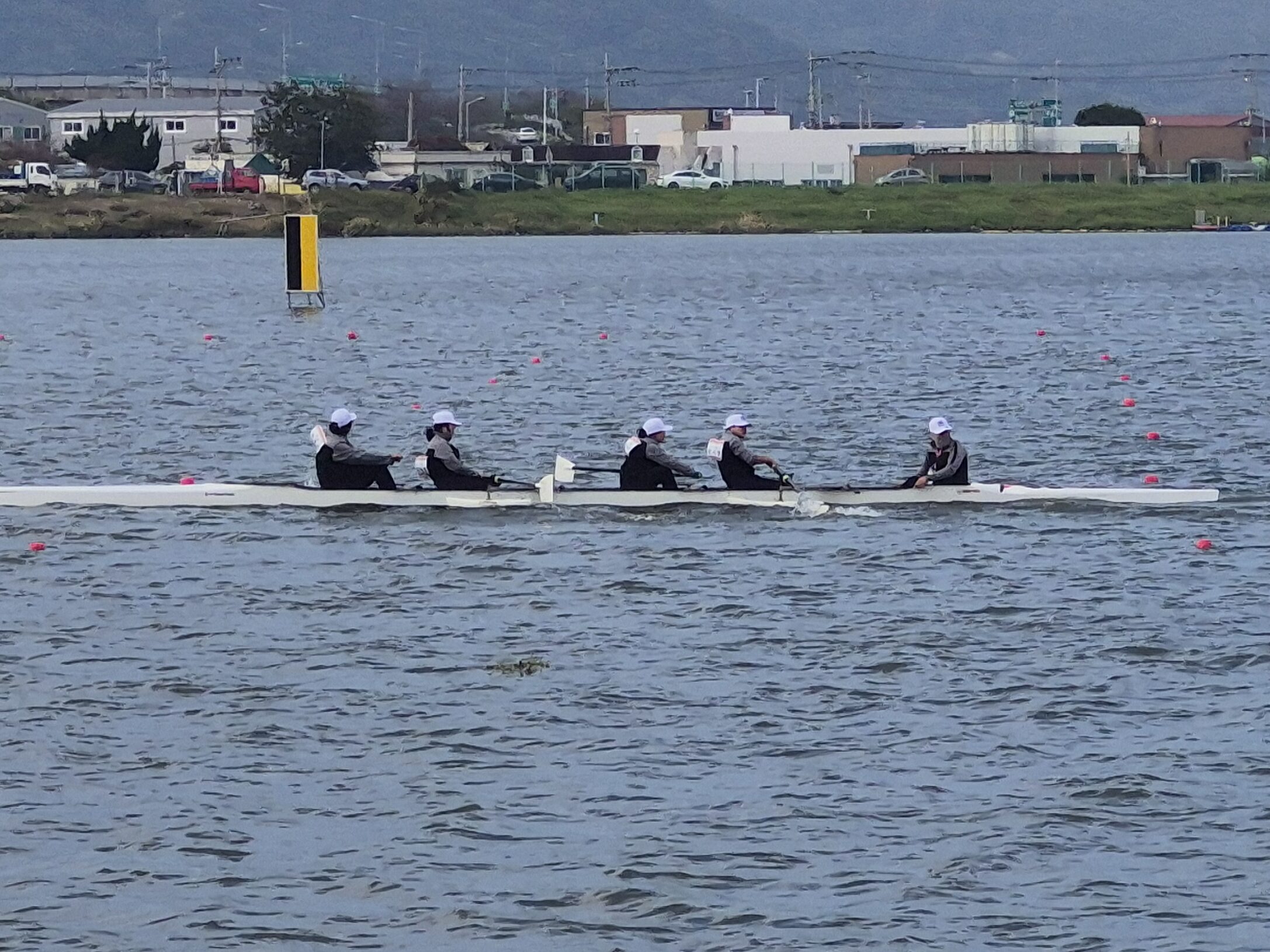 강바람이 매섭게 부는 서낙동강조정경기장에서는 수상 5인조 단체전 예선전이 펼쳐졌다. 이날 전라남도장애인체육회 소속 최종권, 최지영 선수는 악조건 속에서도 예선 통과라는 결과를 받고 기쁨의 웃음을 보였다.