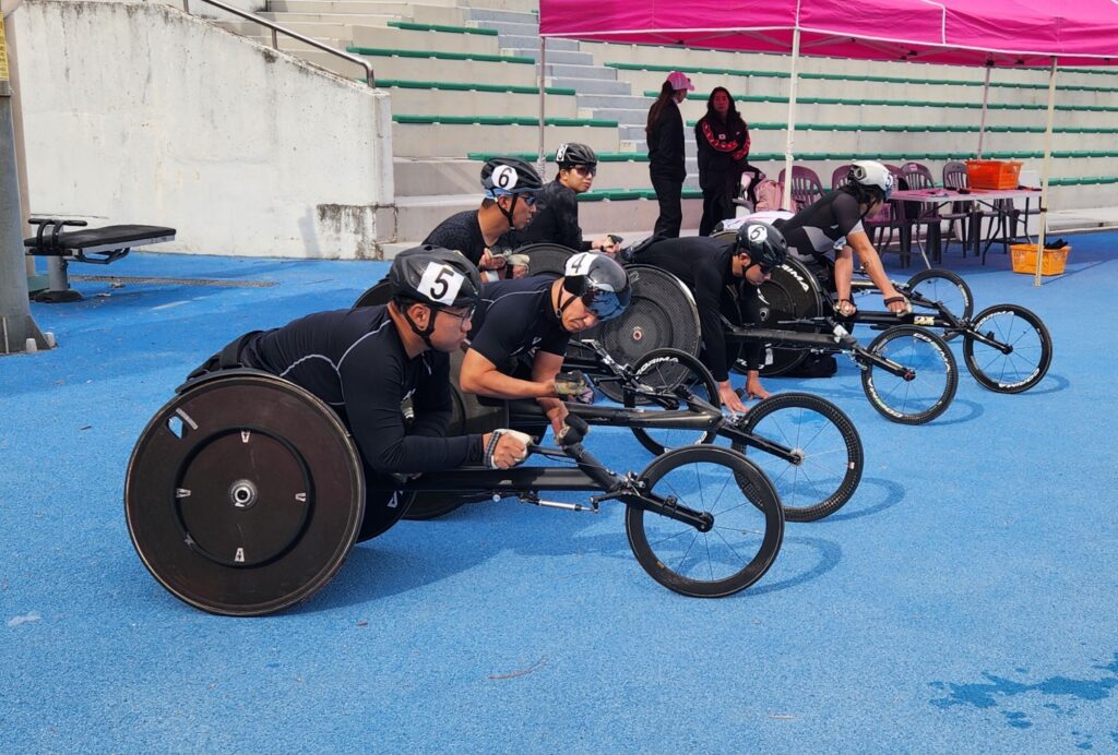 지난달 31일 개막한 제45회 장애인전국체육대회에 참가한 선수들이 출발 전 대기석에서 경기를 준비하고 있다. 시합 준비가 한창인 운동장을 노려보며 곧 있을 자신의 레이스에 좋은 결과가 있기를 기원하는 모습이 인상적이다.