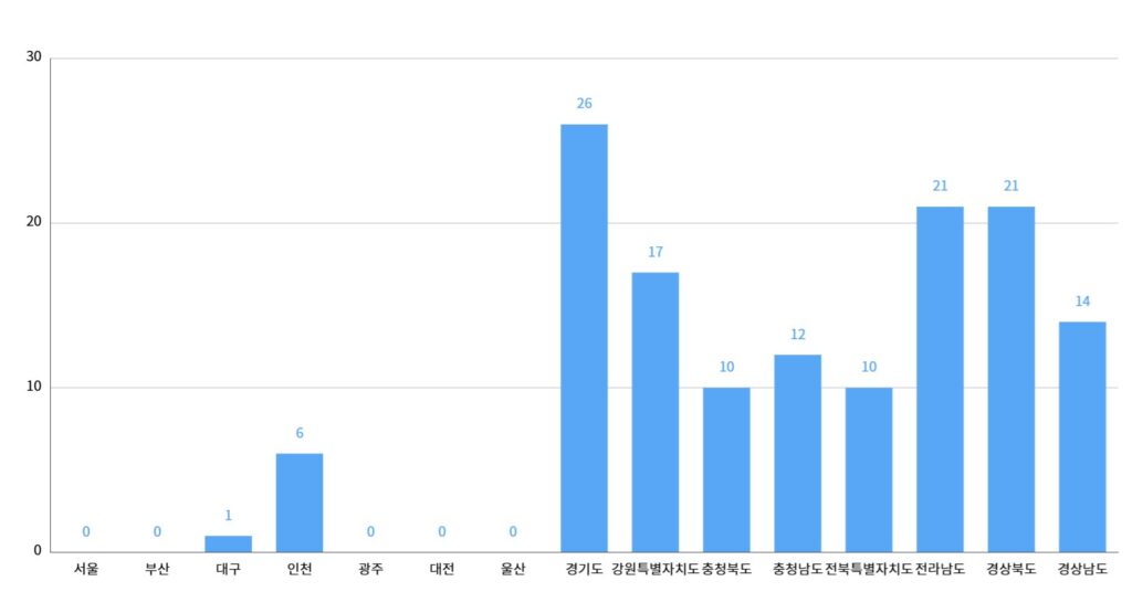 수도권에서는 경기도 31개 기초지자체 중 수원·여주·오산·용인·화성을 제외한 26곳이, 인천은 10곳 중 6곳이 기준에 미달했다. 강원특별자치도는 태백시를 제외한 17곳, 충북은 청주시를 제외한 10곳, 충남은 부여군·아산시·천안시를 제외한 12곳이 의무고용률을 지키지 못했다. 전북특별자치도는 무주·익산·임실·전주를 제외한 10곳, 전남은 무안군을 제외한 21곳, 경북은 성주군을 제외한 21곳, 경남은 고성·사천·창녕·함양을 제외한 14곳이 의무고용률을 달성하지 못했다.