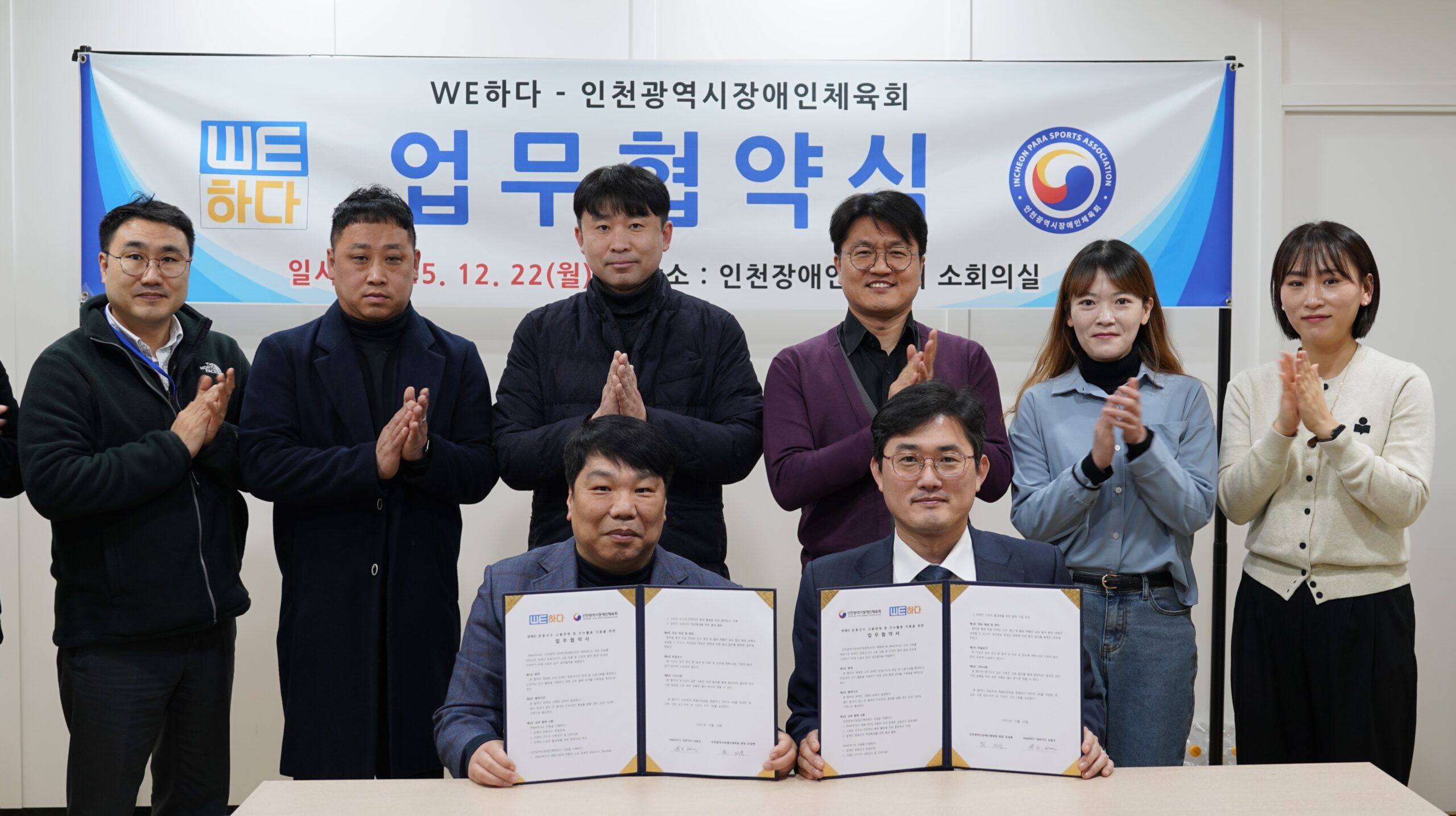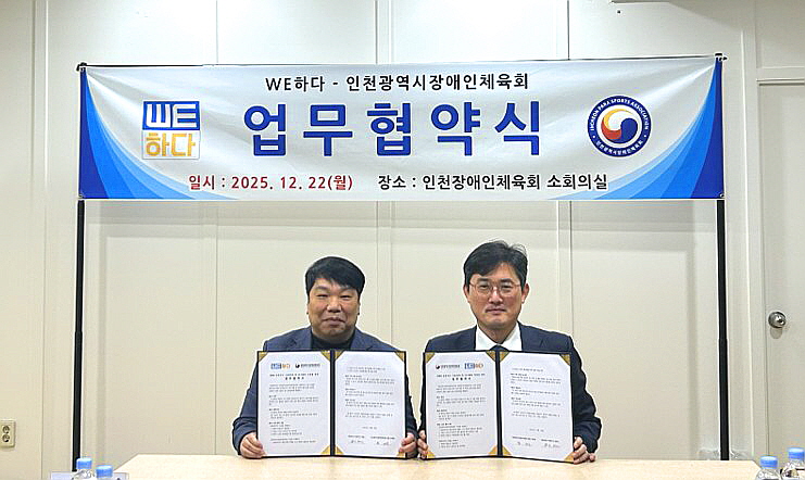 인천광역시장애인체육회가 장애인 운동선수의 고용 창출 및 안정적 훈련 환경 조성을 위해 (주)WE하다와 업무협약을 맺었다고 22일 밝혔다.