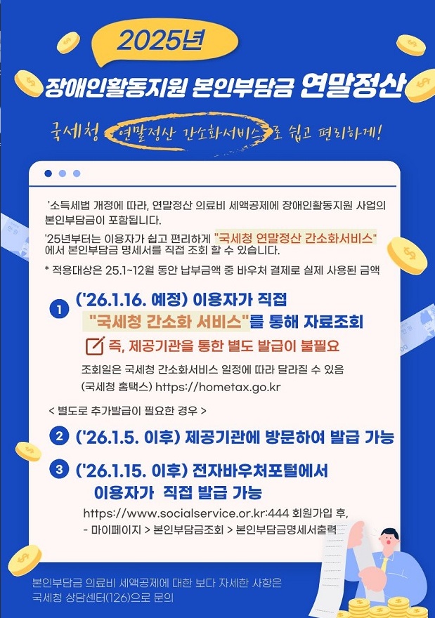 장애인활동지원 본인부담금 연말정산 간소화