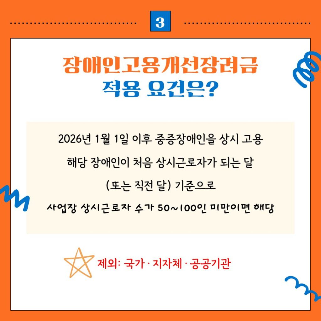 기획기사 미분류 헤드라인 뉴스 [기획]2026년 미리보는 장애인 고용 제도(1)중증장애인 고용 확대 시 기업에 장려금 지급 고대광 기자(daebal@kdjob.co.kr) 2026년 01월 05일 0 2026년 1월부터 50~100인 미만 의무미이행 사업주 대상, 최대 1년간 지원 고용노동부가 2026년, 중증장애인 고용 확대를 위한 장애인 고용 제도 개편을 예고했다. 중증장애인 고용을 늘린 중소 […]