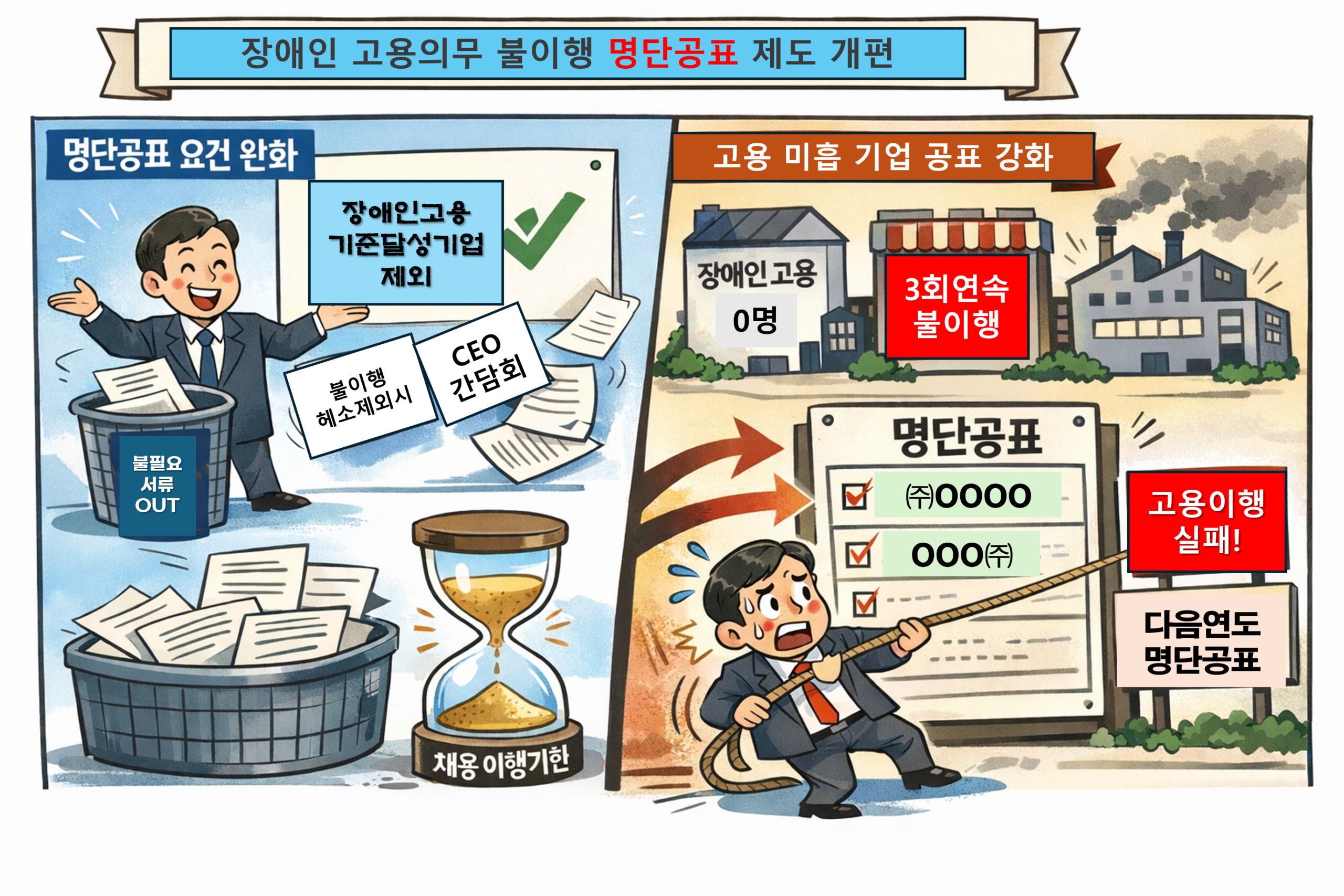 고용노동부에 따르면 ‘장애인 고용의무 불이행 명단공표 제도’ 개편안이 2026년 1월 1일부터 시행됐다. 이번 개편은 그동안 현장에서 제기돼 온 불필요한 서류 제출과 형식적 절차를 줄이고, 명단공표가 실제로 장애인 고용 확대에 기여하도록 제도의 목적을 분명히 하기 위해 추진됐다.